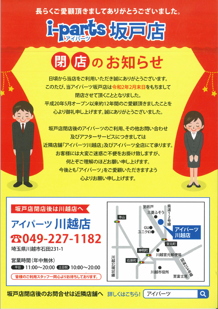 �����m�点�A�A�C�p�[�c��˓X�͗ߘa�Q�N�Q�������������܂��ĕX�����Ă����������ƂɂȂ�܂����B